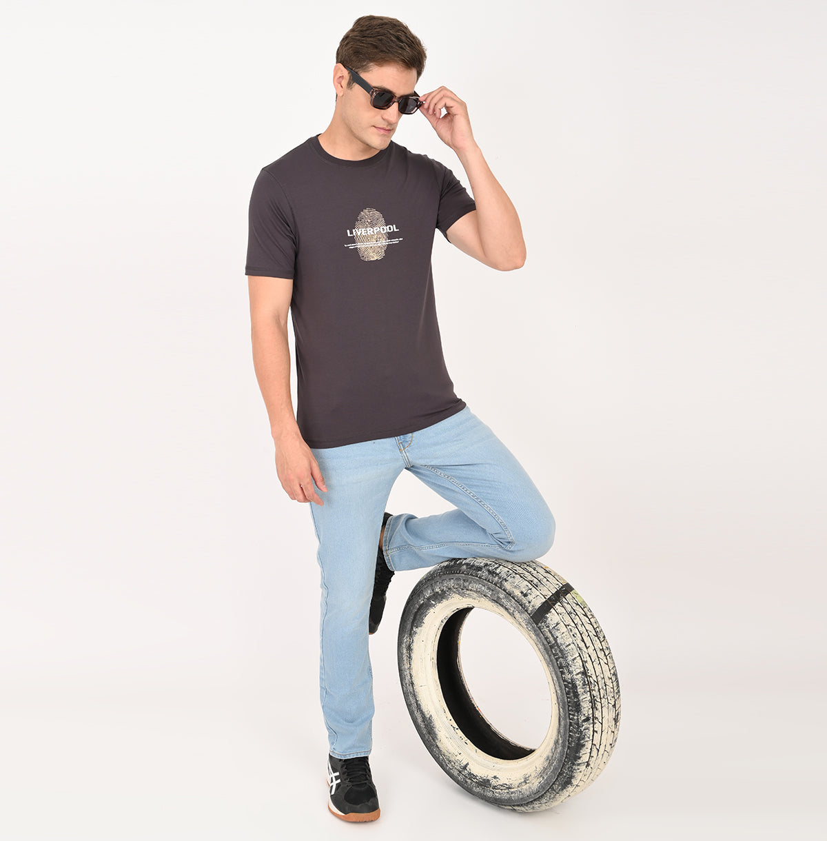 What sets this tee apart is the eye-catching printed design across the front. The bold graphic print adds a stylish pop of personality to any outfit. Whether you pair it with jeans, chinos, or shorts, this printed tee will be your go-to for achieving a cool, laid-back look.
